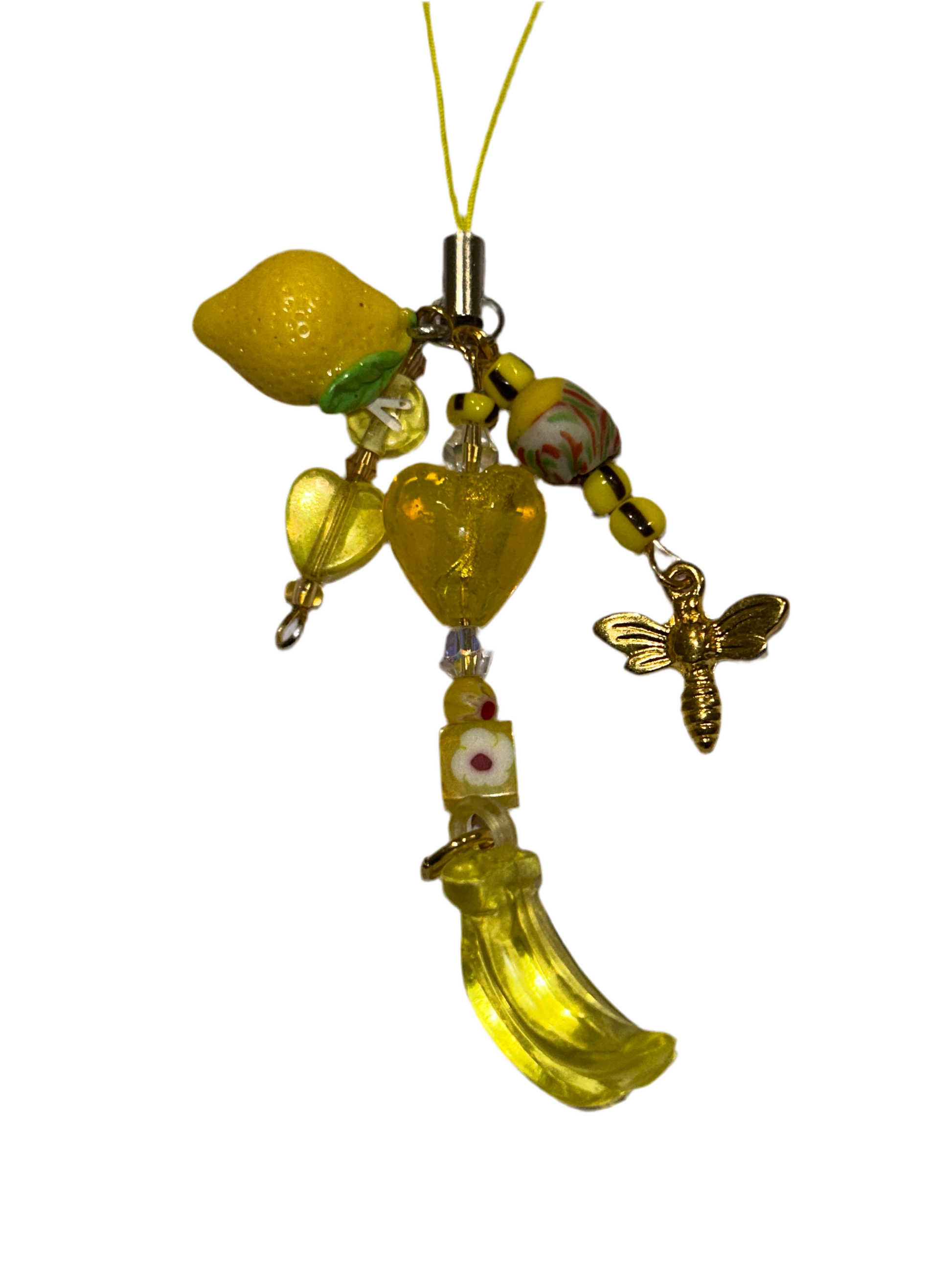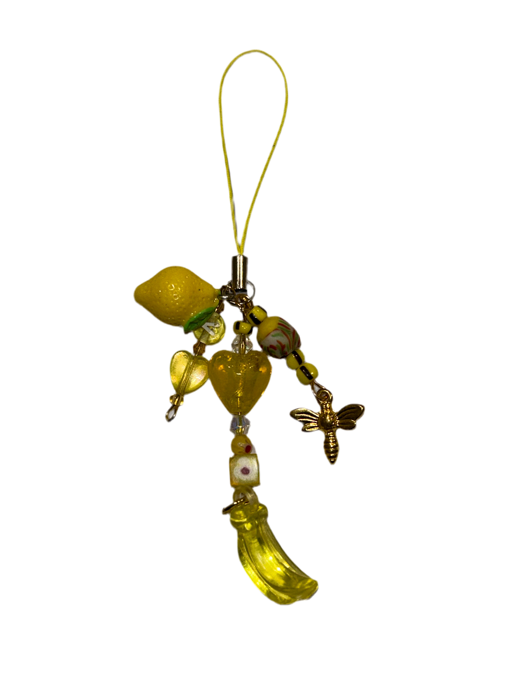 Cute beaded phone charm. Made with various beads including shells, glass beads, fino fruits and plastic beads / charms.