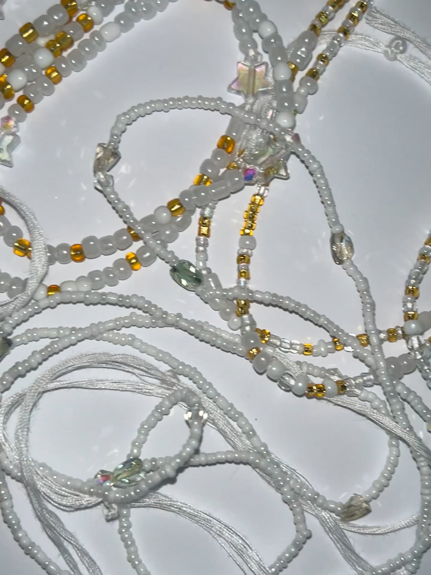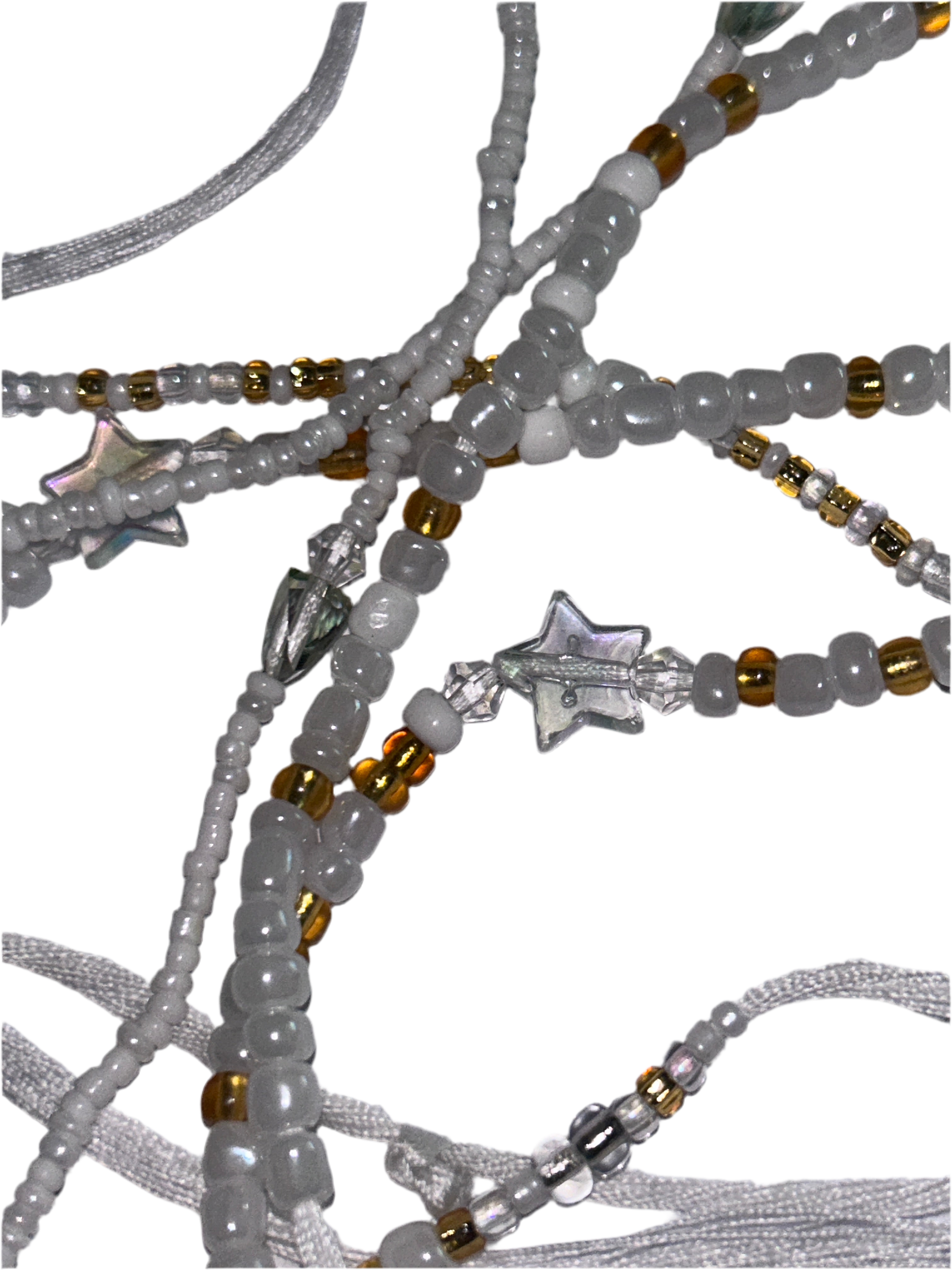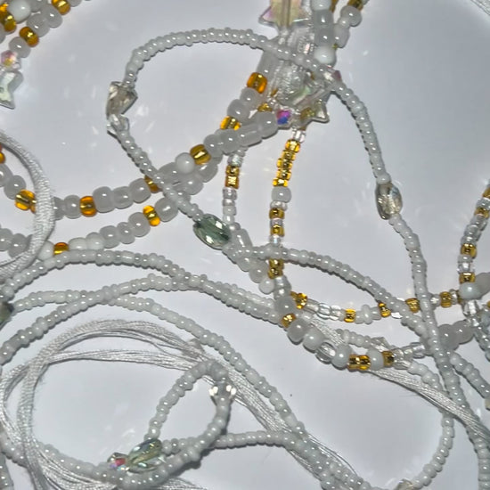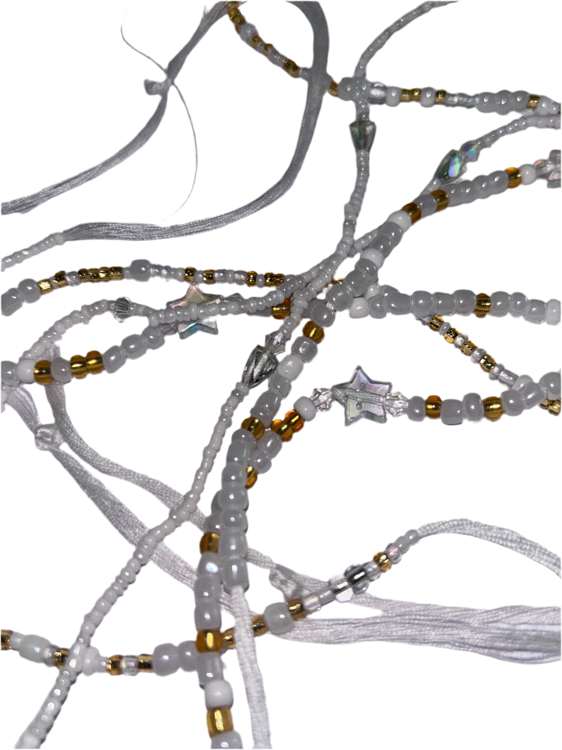 This mix of white, clear and gold waistbeads embellished with star and crystal beads.