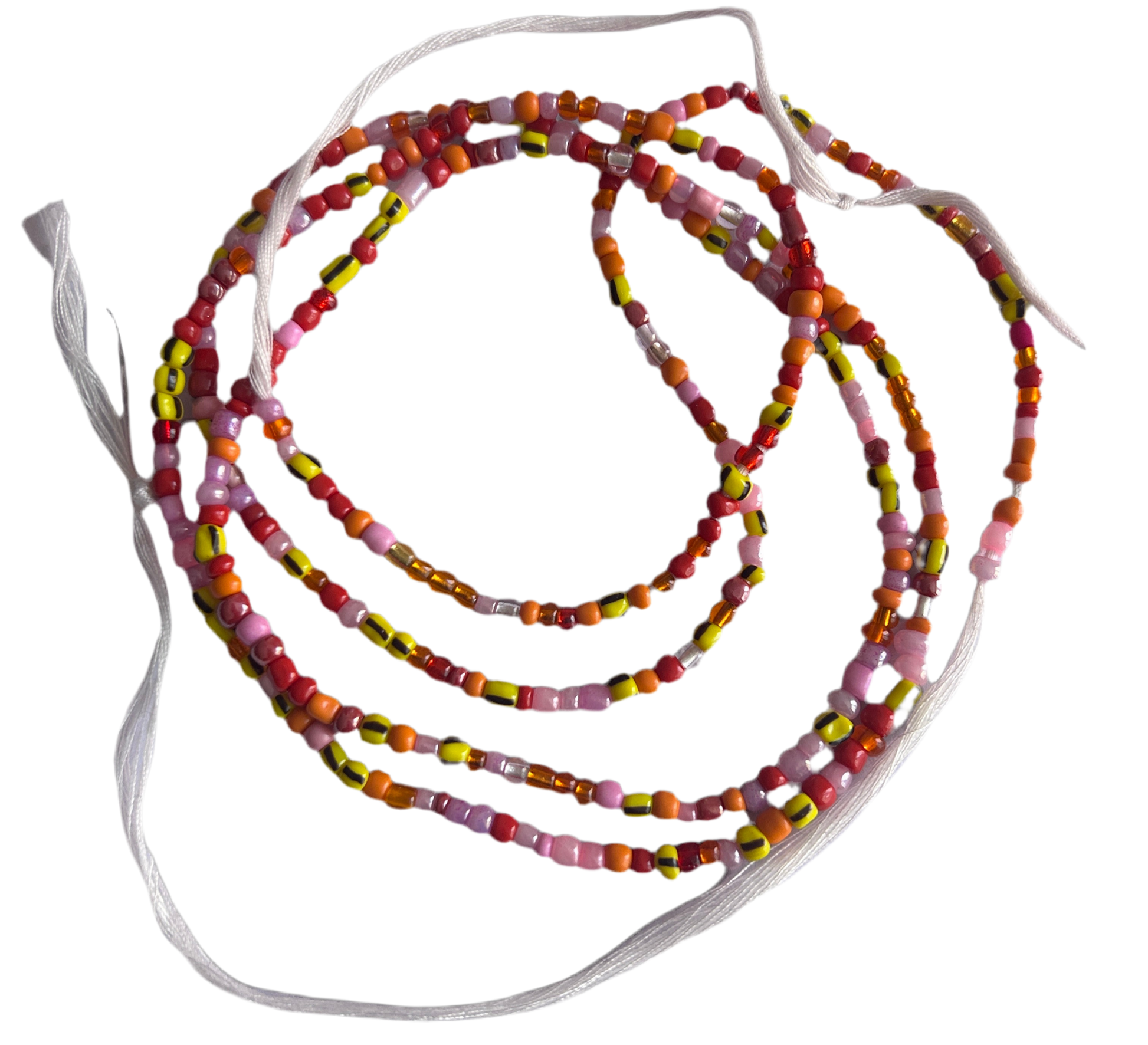 Please note that the beads may not be exactly as the picture, as the waistbeads are custom-made and the pink beads may fade over time and will alter the overall colour of the waistbeads.